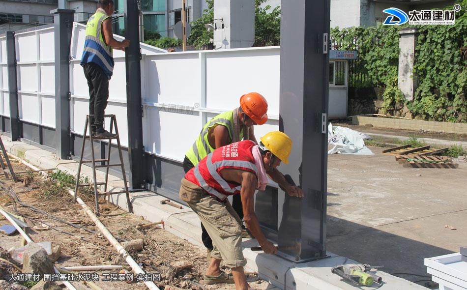 上述展示 深圳市大通建材的圍擋基礎(chǔ)墩與圍擋的安裝過(guò)程