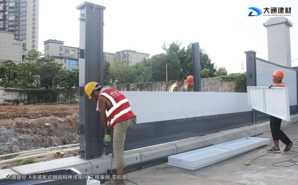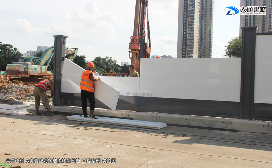 深圳大通建材生產(chǎn)符合惠州市政新標準的惠州圍擋A款,這是一款新型裝配式鋼結(jié)構(gòu)烤漆圍擋,拆裝方便、抗風力強、安全性高,已廣泛應用于惠州各地區(qū)的房地產(chǎn)建設(shè)工程項目中。
