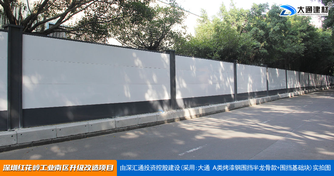 施工安全方案解決工程師,24小時在線等候您的咨詢!自從2019年爆發新冠病毒到現在2022年已有三年之久,很多行業受到新冠疫情的影響,處于低谷期,而深圳的老舊小區改造、道路修改、地鐵修建、房地產樓盤開發等各種項目工程,因深圳疫情防控得當,未受到過多的影響,一如既往的能聽到機器操作的聲音,這些項目工程的施工外圍均需要圍上圍擋,大通建材A類烤漆鋼結構圍擋-半龍骨款是今年備受工程單位喜愛的圍擋款式之一。