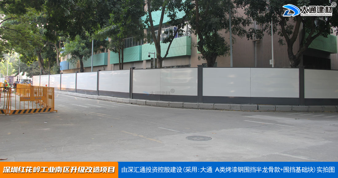 深圳西麗紅花嶺城市更新項目工程,在工程周邊都都設置了采用大通建材A類烤漆鋼圍擋把施工場所圍起來,該項目工程位于深圳市南山區西麗街道紅花嶺工業園區由紅花嶺工業南區、北區、西區共三個部分組成,坐落于塘朗山山腳,東臨西麗商業中心區,西接西麗高爾夫球場,北望西麗湖度假村及深圳大學城。