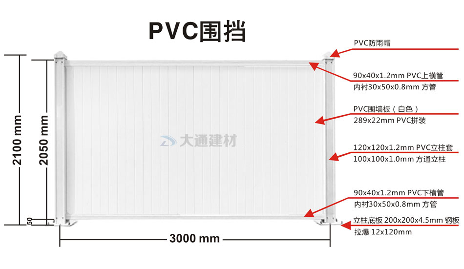 圖展示的是大通白色PVC圍擋 規(guī)格參數(shù)圖