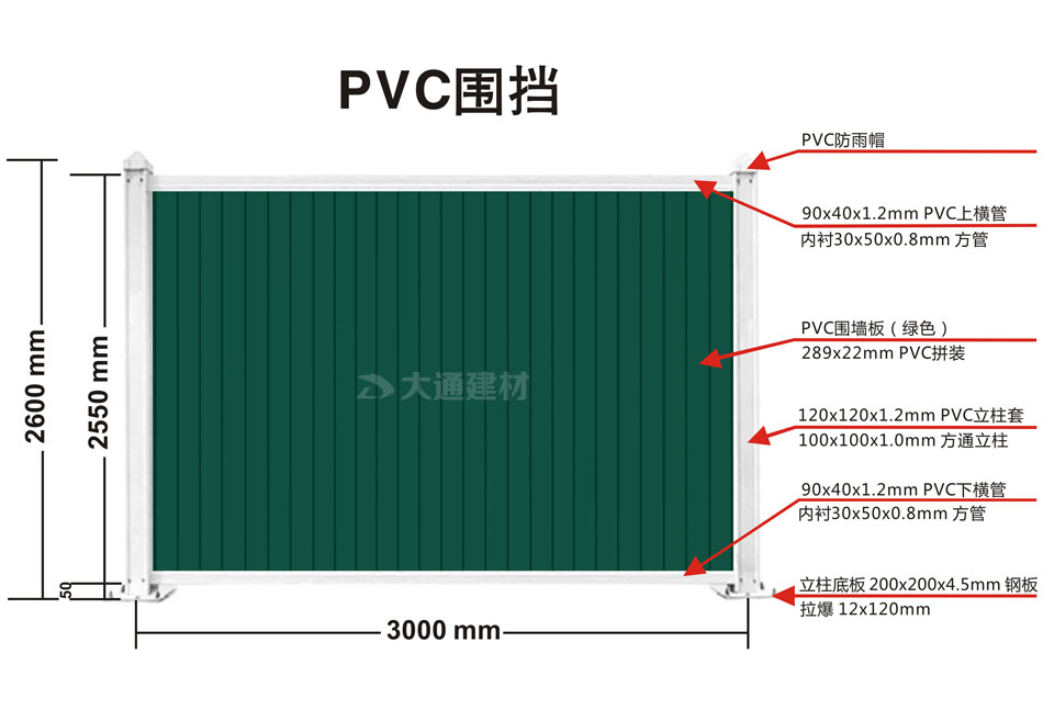 圖展示的是大通綠色PVC圍擋 規(guī)格參數(shù)圖