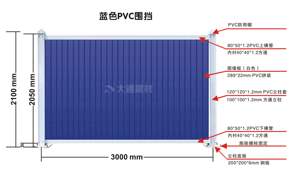 圖展示的是大通藍(lán)色PVC圍擋 規(guī)格參數(shù)圖
