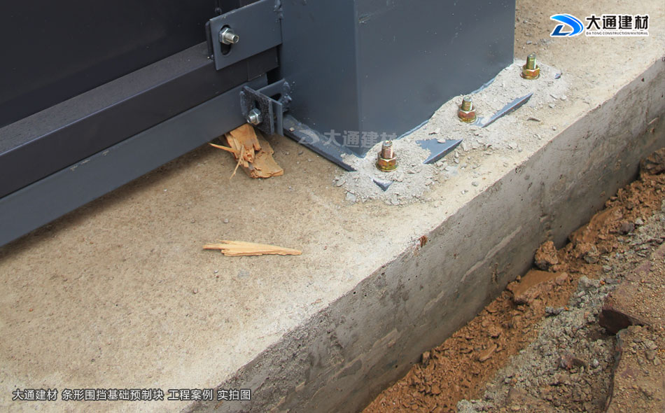 市面上常用的圍擋基礎有兩款:一款是條形圍擋基礎預制塊,另一款是塊狀圍擋基礎預制塊圍擋。大通建材塊狀圍擋基礎預制塊將圍擋立柱固定在圍擋基礎預制塊上,更安全穩固,大通建材圍擋基礎預制塊的常規尺寸(長寬高):1000mmx600mmx300mm