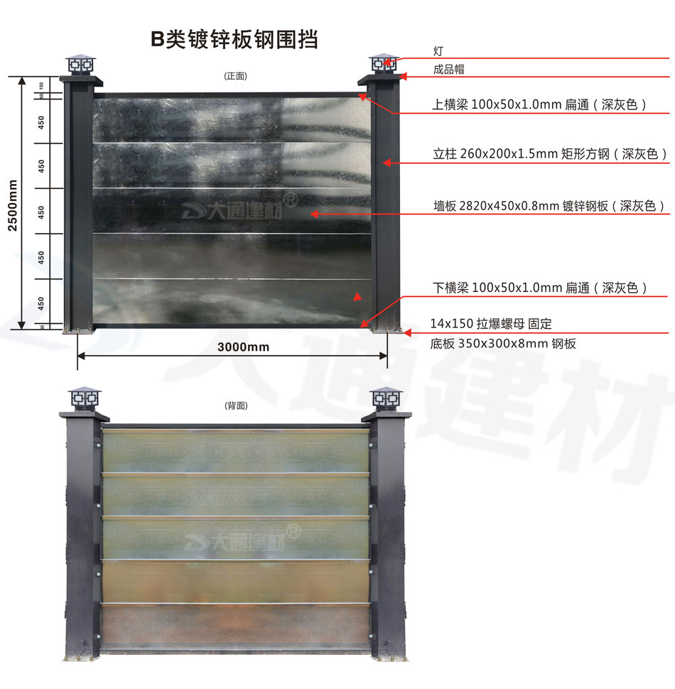 深圳市大通建材 B類鋼圍擋-鍍鋅板款 工程鋼圍擋 安裝說明