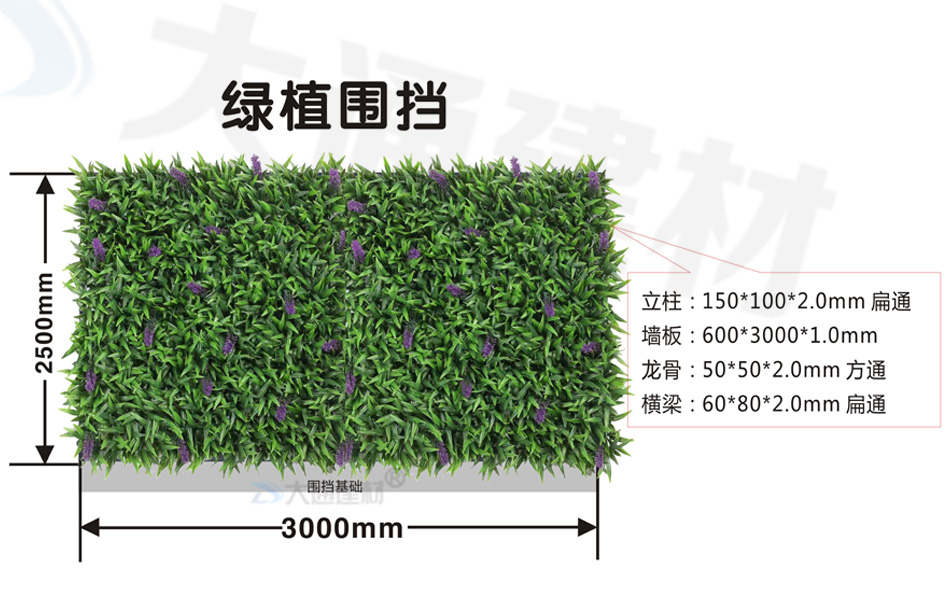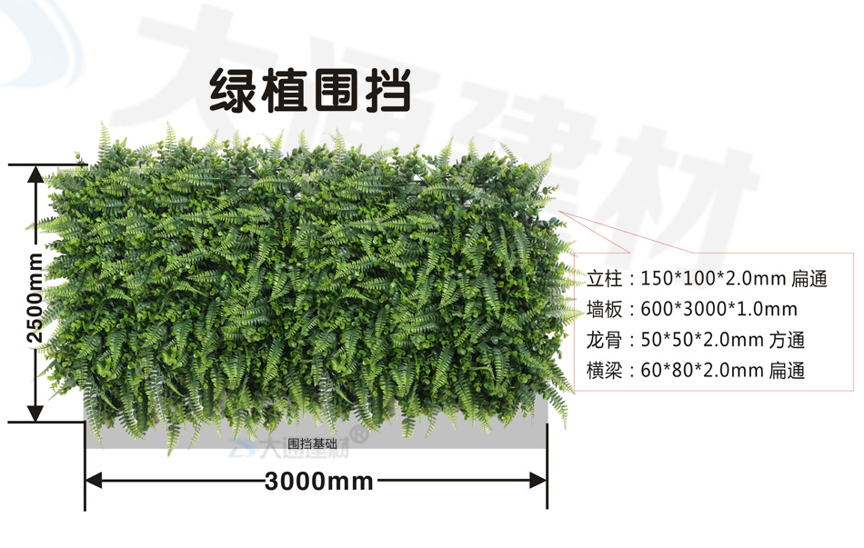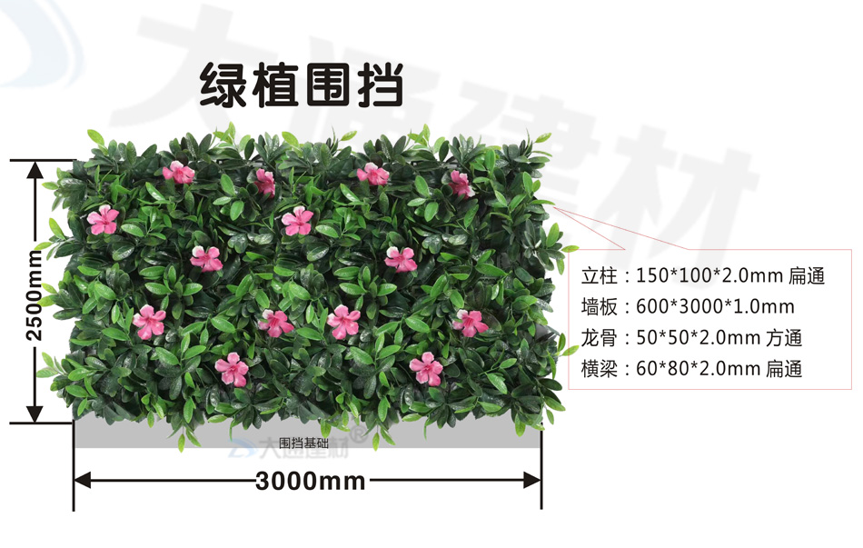 深圳大通建材綠植圍擋采用高品質(zhì)、防紫外線、抗老化、環(huán)保材質(zhì)制作而成,各種綠植合理搭配,構(gòu)成一副讓人流連的自然風(fēng)景畫。